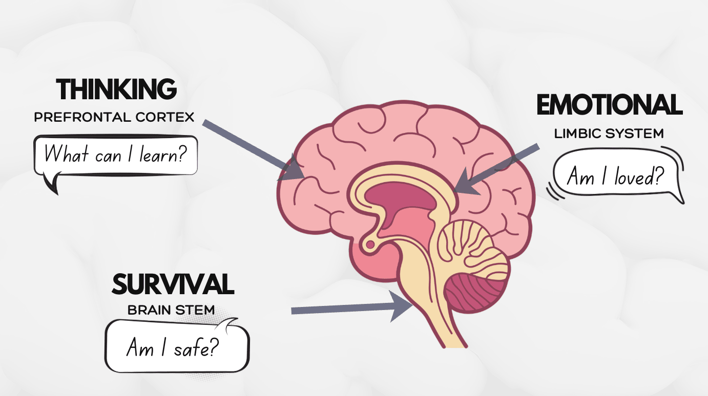 The brain stem (your survival center): "Am I safe?"